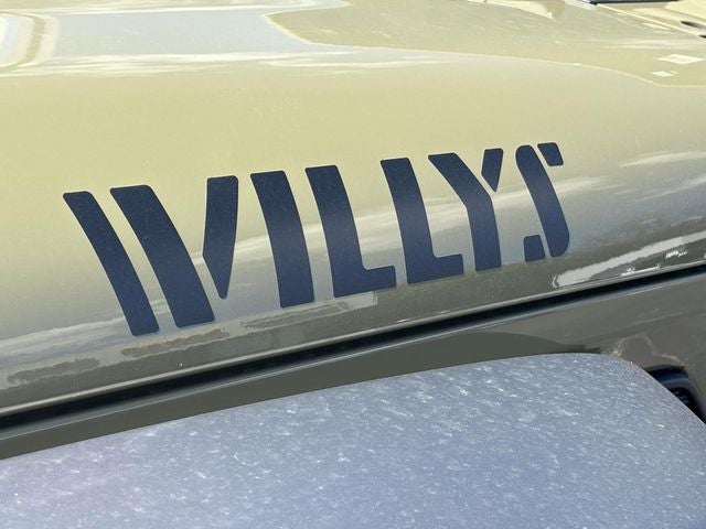 Wrangler Willys, 4WD, 12.3 Touchscreen Display, 2-Door Passive Entry, Front Door Locks, 4-Wheel Drive Swing Gate Decal, 4.10 Rear Axle Ratio, 4G LTE Wi-Fi Hot Spot, 7 and 4 Pin Wiring Harness, Advanced Brake Assist, Air Conditioning with Auto Temp Control, Air Filtering, AM/FM radio: SiriusXM with 360L, Apple CarPlay/Android Auto, Automatic Headlamps, Auxiliary Switches, Black 3-Piece Hard Top, Black Grille with Gloss Black Rings, Brake assist, Class II Receiver Hitch, Cluster 7.0 TFT Color Display, Connectivity - US/Canada, Convenience Group, Conventional Differential Front Axle, Corning Gorilla Glass, Dana M210 Wide HD Tube Front Axle, Dana M220 Wide Rear Axle, Daytime Running Lamps LED Accents, Deep Tint Sunscreen Windows, Delay-off headlights, E-Locker Rear Axle, Electronic Stability Control, Emergency/Assistance Call, Enhanced Adaptive Cruise Control, Freedom Panel Storage Bag, Front Center Armrest w/Storage, Front fog lights, Front LED Fog Lamps, Full Speed Forward Collision Warning Plus, Google Android Auto, Heated Front Seats, Heated Steering Wheel, Illuminated entry, Increased Travel Export Tuned Suspension, Injection Molded Black Rear Bumper, Integrated Center Stack Radio, Integrated roll-over protection, LED Premium Reflector Headlamps, Low tire pressure warning, Mold in Color Bumper with Gloss Black, Molded in Color Rubicon Highline Flare, MOPAR All-Weather Floor Mats, No Soft Top, Occupant sensing airbag, Off-Road Plus Mode, ParkView Rear Back-Up Camera, Power Dome Dual Vented Hood, Power Heated Mirrors, Power windows, Premium Wrapped Steering Wheel, Quick Order Package 24W Willys, Radio data system, Radio: Uconnect 5 with 12.3 Display, Rear Window Defroster, Rear Window Wiper/Washer, Remote keyless entry, Security Alarm, SiriusXM Radio Service, SiriusXM with 360L, Speed control, Steel Power Dome Hood Package, Steering wheel mounted audio controls, Stop-Start Dual Battery System, Sun Visors with Illuminated Vanity Mirrors, Telescoping steering wheel, Tilt steering wheel, Traction control, Universal Garage Door Opener, Wheels: 17 x 7.5 Painted Black, Willys Hood Decal, 4-Wheel Disc Brakes, 8 Speakers, ABS brakes, Air Conditioning, Aux Battery, Compass, Driver door bin, Driver vanity mirror, Dual front impact airbags, Dual front side impact airbags, For More Info, Call 800-643-2112, Front anti-roll bar, Front Bucket Seats, Front reading lights, Non-Lock Fuel Cap Without Discriminator, Normal Duty Suspension, Outside temperature display, Overhead airbag, Panic alarm, Passenger door bin, Passenger vanity mirror, Power steering, Rear anti-roll bar, Rear reading lights, Split folding rear seat, Tachometer, Trip computer, Variably intermittent wipers, Wrangler Willys, 4WD, 12.3 Touchscreen Display, 2-Door Passive Entry, Front Door Locks, 4-Wheel Drive Swing Gate Decal, 4.10 Rear Axle Ratio, 4G LTE Wi-Fi Hot Spot, 7 and 4 Pin Wiring Harness, Advanced Brake Assist, Air Conditioning with Auto Temp Control, Air Filtering, AM/FM radio: SiriusXM with 360L, Apple CarPlay/Android Auto, Automatic Headlamps, Auxiliary Switches, Black 3-Piece Hard Top, Black Grille with Gloss Black Rings, Brake assist, Class II Receiver Hitch, Cluster 7.0 TFT Color Display, Connectivity - US/Canada, Convenience Group, Conventional Differential Front Axle, Corning Gorilla Glass, Dana M210 Wide HD Tube Front Axle, Dana M220 Wide Rear Axle, Daytime Running Lamps LED Accents, Deep Tint Sunscreen Windows, Delay-off headlights, E-Locker Rear Axle, Electronic Stability Control, Emergency/Assistance Call, Enhanced Adaptive Cruise Control, Freedom Panel Storage Bag, Front Center Armrest w/Storage, Front fog lights,