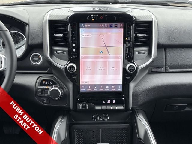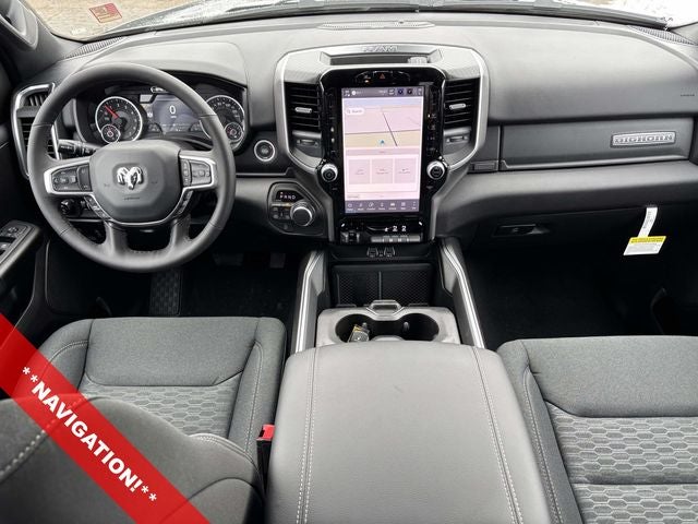 **NAVIGATION!**, **BACKUP CAMERA!**, **8CYL - XXXHP ONCE YOU DRIVE IT THE 6CYL WON'T DO!**, **Bluetooth® HANDSFREE CALLING!**, **MP3 AND IPHONE COMPATIBLE!**, PUSH BUTTON START, 1500 Big Horn/Lone Star, HEMI 5.7L V8 Multi Displacement VVT eTorque, 4WD, Granite Crystal Metallic Clearcoat, 115V Auxiliary Power Outlet, 115V Auxiliary Rear Power Outlet, 12 Touchscreen Display, 2nd Row in Floor Storage Bins, 3 Rear Seat Head Restraints, 4 Way Front Headrests, 4-Wheel Disc Brakes, 400W Inverter, 48V Belt Starter Generator, 4G LTE Wi-Fi Hot Spot, 9 Amplified Speakers with Subwoofer, ABS brakes, Accent Color Door Handles, Accent Color Premium Power Mirrors, Accent Color Tailgate Handle, Air Conditioning ATC with Dual Zone Control, Alloy wheels, AM/FM radio, Anti-Spin Differential Rear Axle, Apple CarPlay, Apple CarPlay/Android Auto, Auto High-beam Headlights, Auto Power-Folding Mirrors, Auto-Dimming Exterior Driver Mirror, Auto-Dimming Rear-View Mirror, Big Horn Level 2 Equipment Group, Black Exterior Mirrors, Black Exterior Truck Badging, Black Headlamp Bezels, Black Interior Accents, Black Painted Exterior Mirrors Caps, Black Premium Power Mirrors, Black Tail Lamp Bezels, Body Color Fender Flares, Body Color Front Bumper, Body Color Rear Bumper with Step Pads, Brake assist, Bucket Seats, Center Console Parts Module, Cluster 7.0 TFT Color Display, Compass, Configurable Drive Mode, Connected Travel and Traffic Services, Connectivity - US/Canada, Convex Wide-Angle Exterior Mirror Insert, Delay-off headlights, Deluxe Cloth Bucket Seats, Disassociated Touchscreen Display, Dual Exhaust with Black Tips, Dual front impact airbags, Dual front side impact airbags, Electronic Stability Control, Exterior Mirrors Courtesy Lamps, Exterior Mirrors with Heating Element, Exterior Mirrors with Supplemental Signals, Front anti-roll bar, Front Center Armrest w/Storage, Front fog lights, Front Seat Back Map Pockets, Front wheel independent suspension, Full Length Floor Console, Fully automatic headlights, Global Telematics Box Module, Glove Box Lamp, Google Android Auto, GPS Antenna Input, GPS Navigation, Grille Black Surround Black Mesh, HD Radio, Heated door mirrors, Heated Front Seats, Heated Steering Wheel, Illuminated entry, Integrated Center Stack Radio, Integrated Voice Command with Bluetooth®, Leather Wrapped Steering Wheel, LED Dome Lamp with on/Off Switch, LED Footwell Lighting, Low tire pressure warning, Manual Adjust 4-Way Front Passenger Seat, Media Hub with 2 Charge Only USBs, MOPAR Front and Rear Rubber Floor Mats, Night Edition, Occupant sensing airbag, Overhead LED Lamps, Panic alarm, ParkView Rear Back-Up Camera, Power 2-Way Driver Lumbar Adjust, Power Adjust 8-Way Driver Seat, Power Adjustable Pedals, Power door mirrors, Power windows, Premium Overhead Console, Protection Group, Quick Order Package 27Z Big Horn, Radio data system, Radio: Uconnect 5 Navigation with 12.0 Display, RAM Grille Badge - Black, Rear 60/40 Folding Seat, Rear Center Armrest, Rear Power Sliding Window, Rear step bumper, Rear Window Defroster, Remote keyless entry, Remote Tailgate Release, Security Alarm, SiriusXM Radio Service, SiriusXM with 360L, Speed control, Steering Wheel Mounted Audio Controls, Sun Visors with Illuminated Vanity Mirrors, Telescoping steering wheel, Tilt steering wheel, Tow Hooks, Traction control, Trailer Brake Control, Universal Garage Door Opener, USB Host Flip, Wheels: 20 x 9 Aluminum Chrome Clad, 6 Speakers, Air Conditioning, Bumpers: chrome, Cloth Bucket Seats, Driver door bin, Front Bucket Seats, Front reading lights