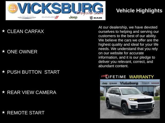 ***FREE LIFETIME WARRANTY – Vicksburg CDJR Exclusive! – SEE DEALER FOR FULL DETAILS!*** FREE Engine Warranty with purchase of Pre-Owned Vehicle...Vicksburg Chrysler Dodge Jeep RAM... the ONLY Dealer in Southwest Michigan with THIS EXCLUSIVE Engine for Life PROMISE!